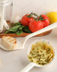 Part scoop, part spatula, part ladle. Scoop, serve, & scrape hard to reach corners.